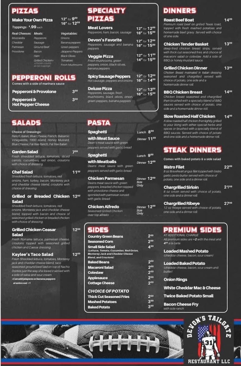 Welcome to Devon’s Tailgate Restaurant, where the love for pizza meets the warmth of home-cooked meals. Nestled at 902 E Main St, Harrisville, WV, this local gem stands out for its welcoming atmosphere and remarkable culinary offerings.